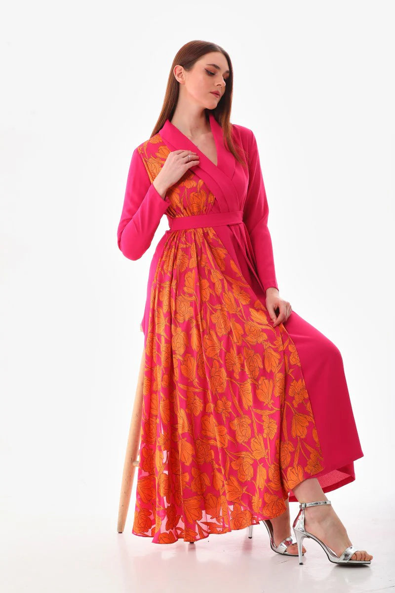 S&D Contoured Flowers Dress Fuchia